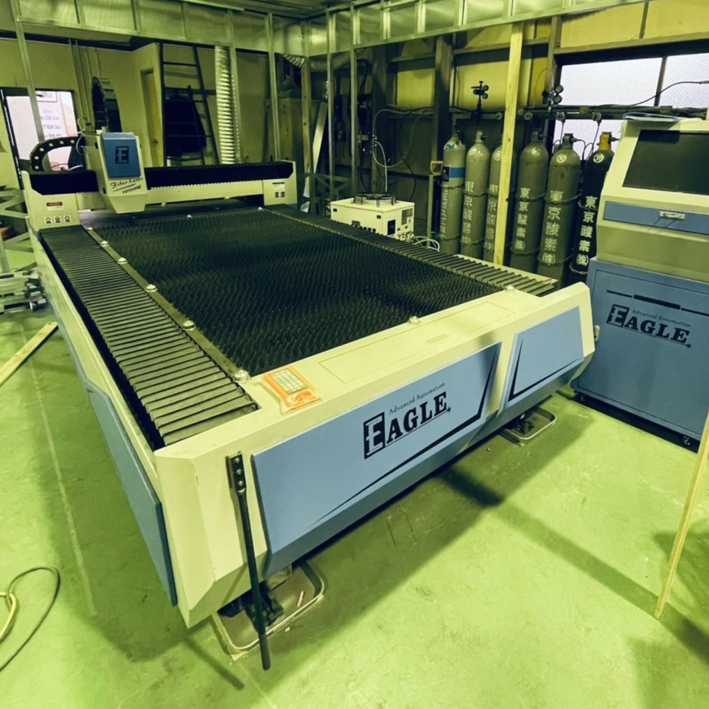 カット工程で活躍するファイバーレーザー加工機。多彩なカットノウハウを蓄積し、難しいカットも対応可能に。